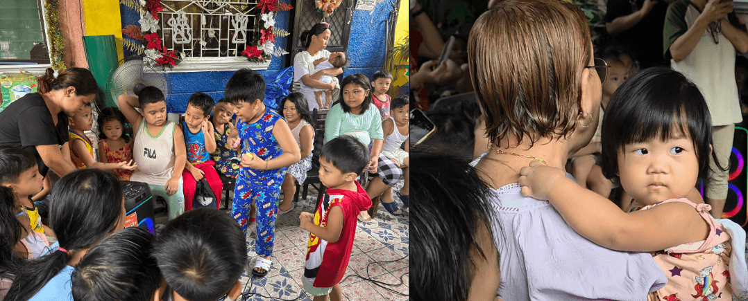 At first, some of the children were shy, peeking from behind their parents or hesitating to join in. Denise led the opening remarks, breaking the ice with her warm and friendly approach. Soon, the children were laughing and playing, filling the area with energy. Their excitement set the perfect tone for a morning full of giving and connection.